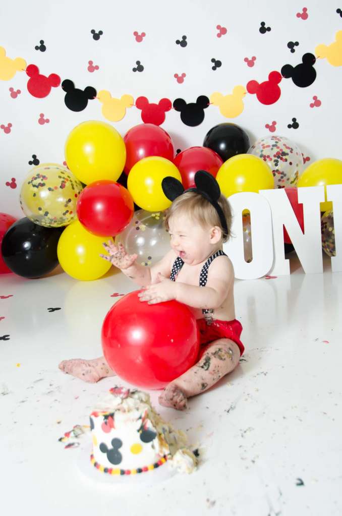 Pre-Party Photo Shoot: I love having photos to hang up at the party, so I always do a “pre-birthday” photo shoot! If you don’t have a family photography, don’t hesitate to set up a solid background and take some I-Phone photos. For the photoshoot that I did for Jaxson, I used white panels from Home Dept. I was able to print out little Mickey Mouse heads on my Cricut with some construction paper and did a quick balloon arch! Don’t get intimidated with the balloon arch, you just need a balloon pump and it goes super quick. I ordered this adorable Mickey outfit (Etsy store closed, but I linked a similar one) and had a smash cake made locally!
