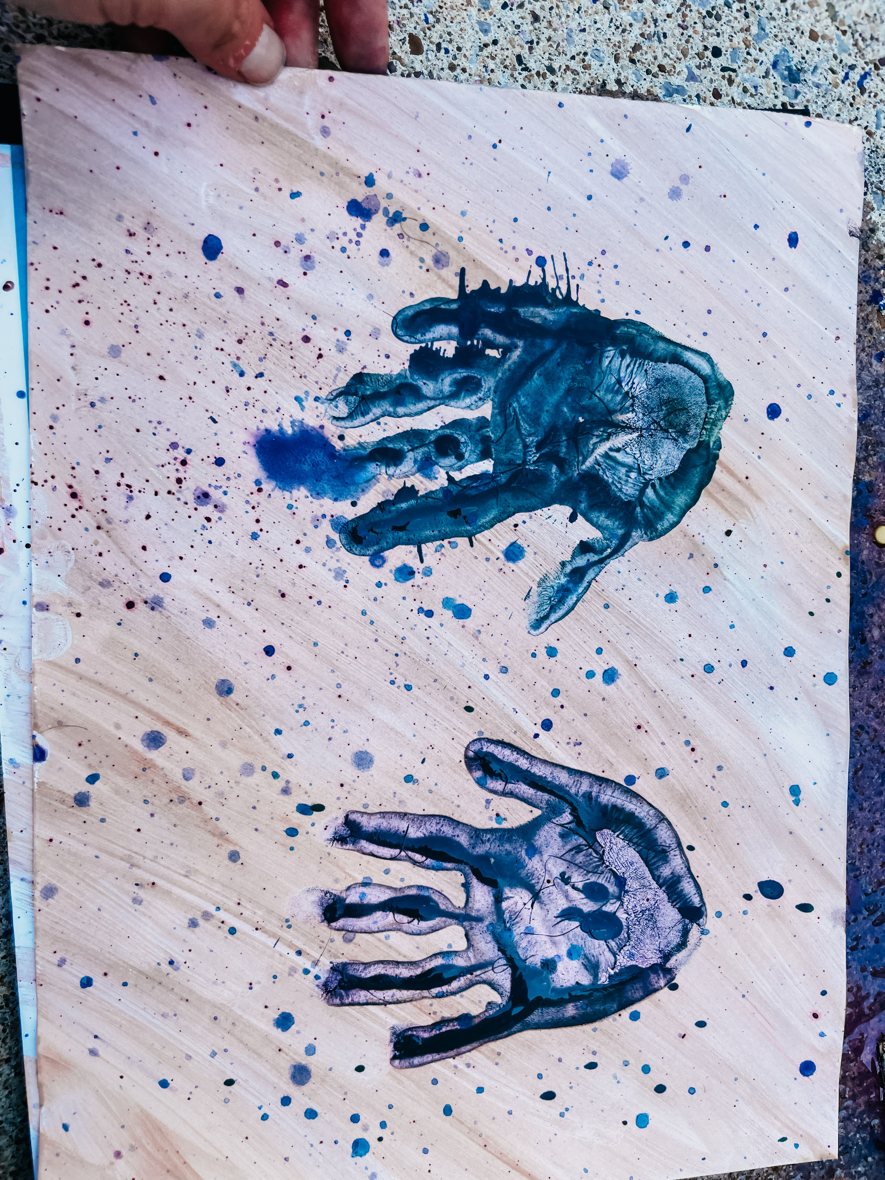 2. Hand and Foot Prints: Who doesn’t love a good handprint to remember just how little they were? Make sure to gets lot of wet tempura paint and cover their whole palm using a paint brush. I like to do one hand at a time, so it doesn’t dry out too fast. You can also have them walk in the paint/water mixture that’s on the ground and then step on the paper to get a footprint! Pro Tip: Always date the back of your artwork. Trust me, do you even remember what you did yesterday?